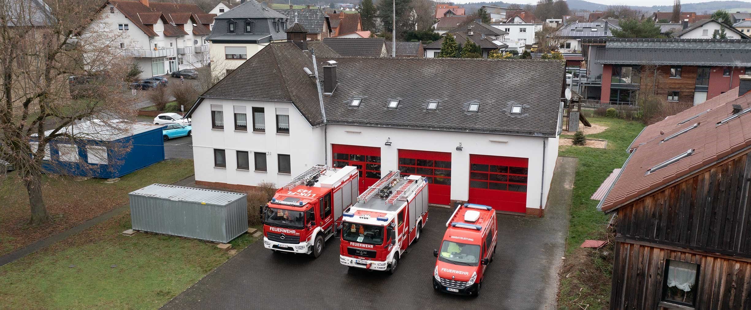 Ihnen stehen ein Hilfeleistungslöschfahrzeug HLF 20/16, ein Löschgruppenfahrzeug